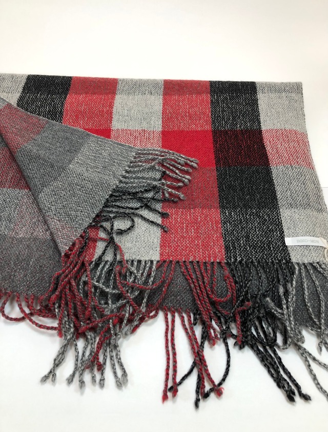 赤、黒、グレーのカシミアを昼夜織りしました。 長さ193cm(8cm)、巾47cm 昼夜織りなので片面はパキッとした一松ですが、もう片面はグレーがかった色合いになっています。気分で両方楽しめます。